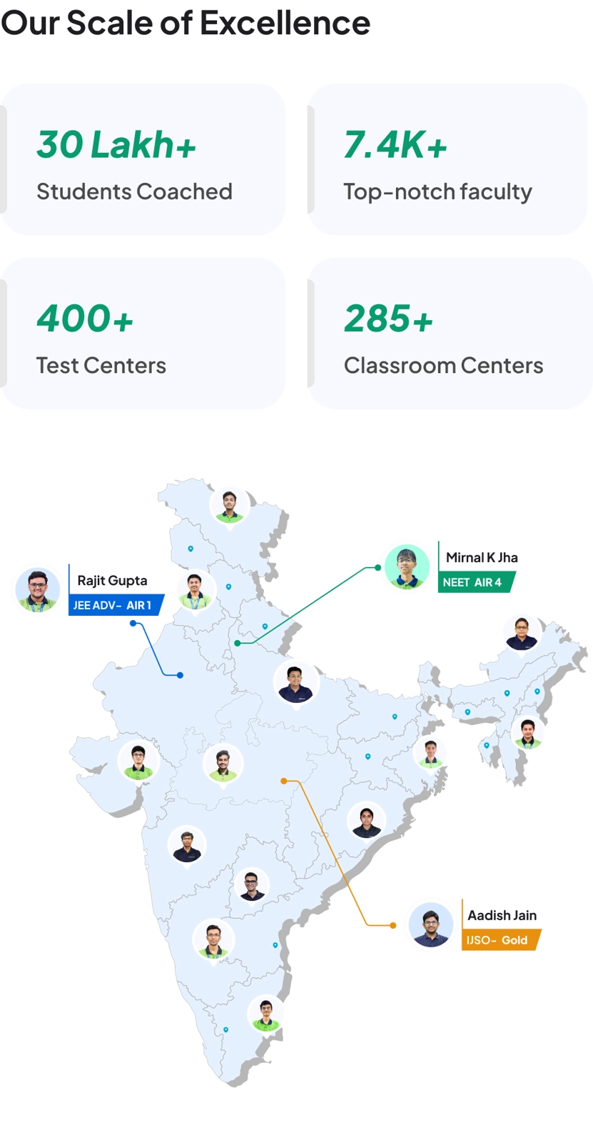 ALLEN is a national leader in competitive exam coaching, with a presence across 68 cities, 285+ classrooms, and 400+ test centers. Its robust offline network is complemented by ALLEN’s online platform, delivering Kota’s top faculty and quality study materials to learners everywhere.