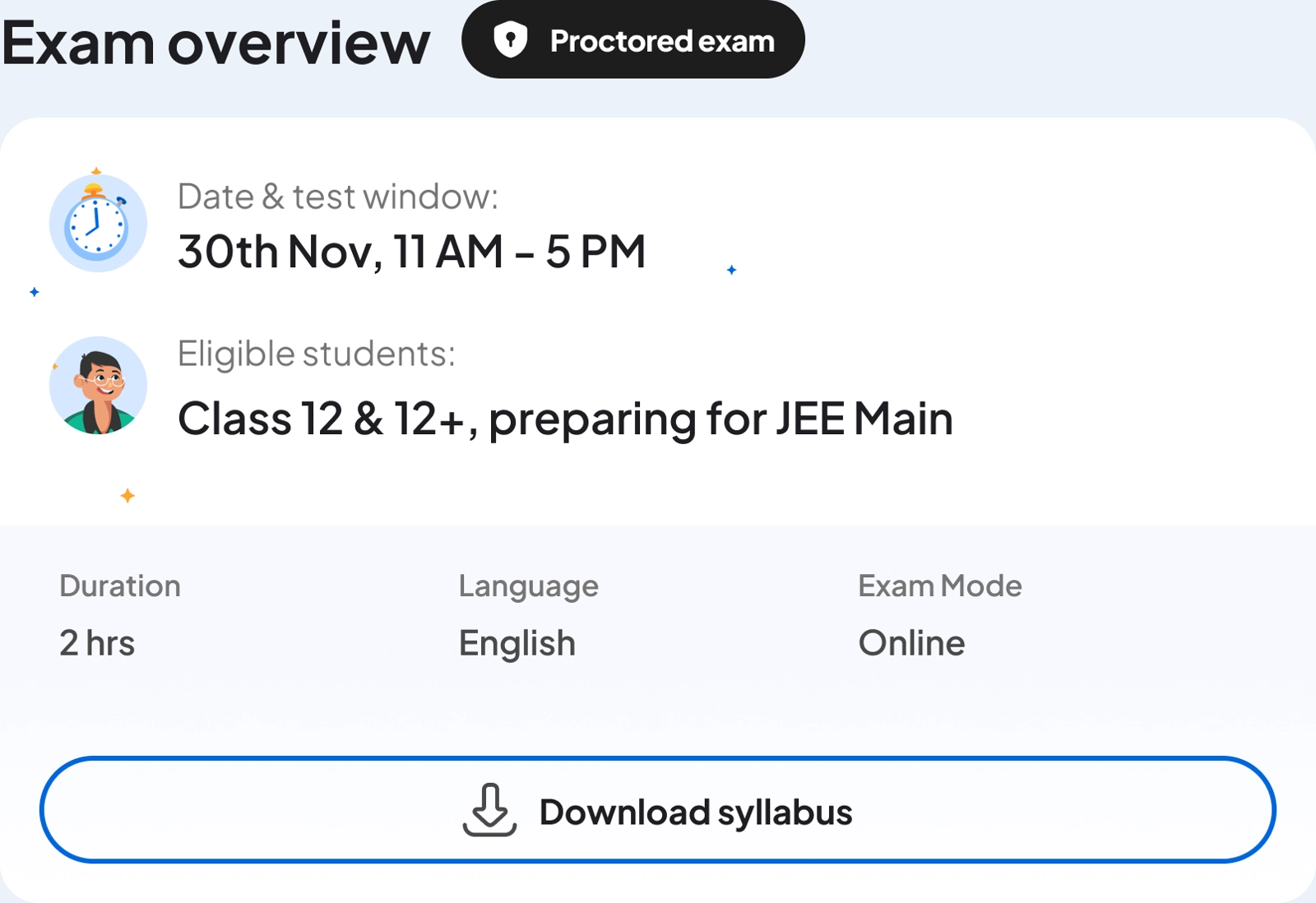 The question paper is designed by ALLEN Kota’s top faculty to match the real JEE Main level. It is proctored, with real-time monitoring to ensure fairness.