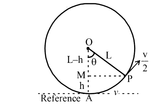 In `Delta OPM, cos theta = (L -h)/(L) = ((L - (15L)/(8)/(L) = (-7)/(8)`