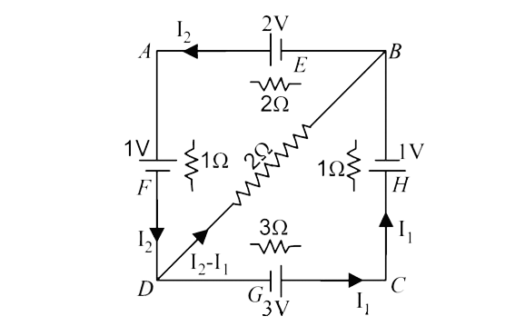 - In the circuit shown in figure E,F, G and H are cell of emf 2,1,3, and...