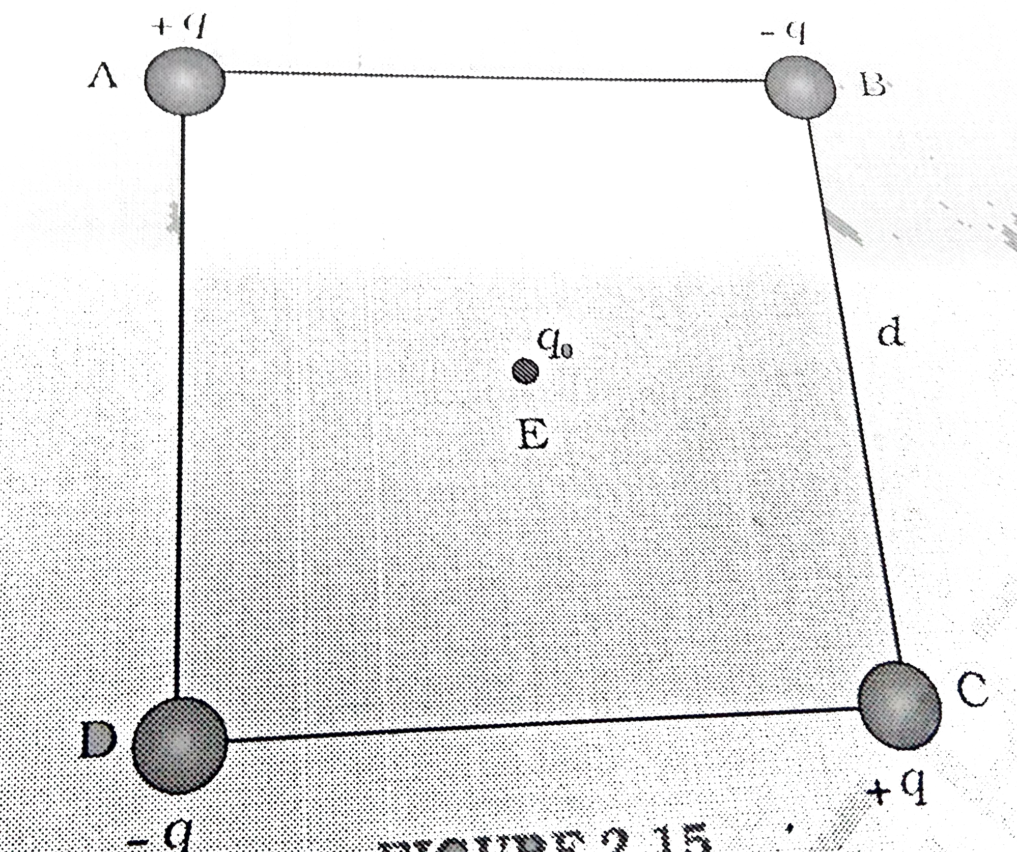 - चित्र 2.15 में दर्शाए अनुशार चार आवेश भुजा d वाले किसी वर्ग ABCD के शी...