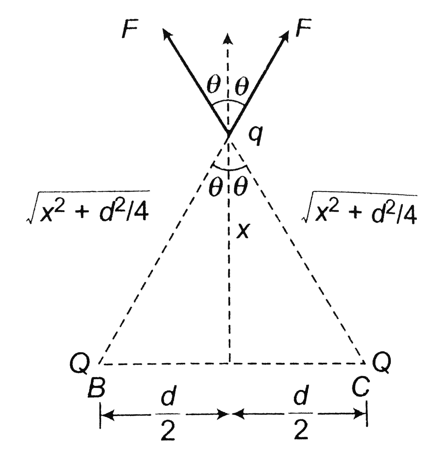 - Three similar charges +q are placed on 3 corners of an equilateral tri...