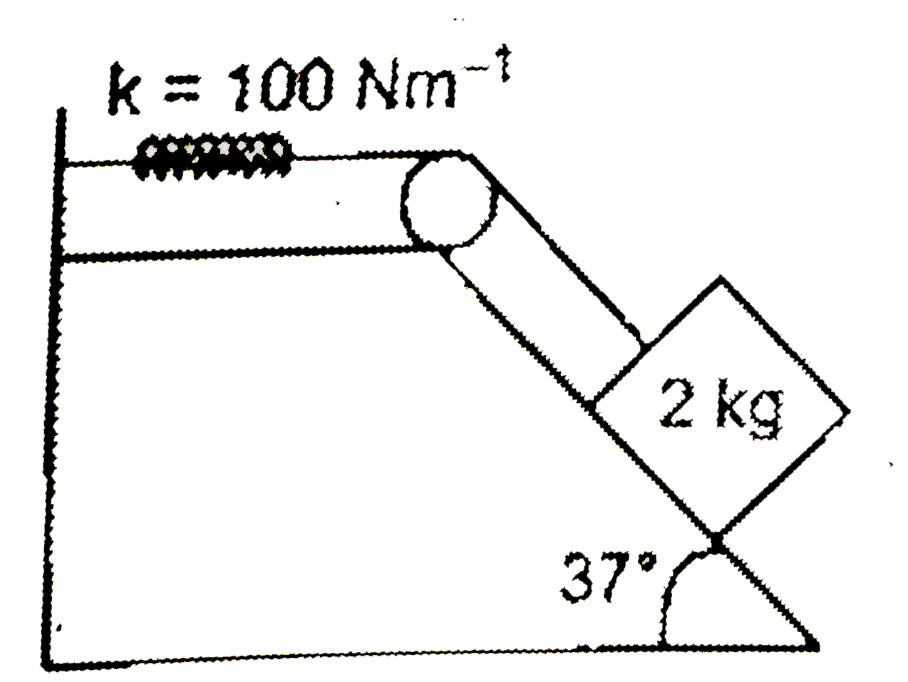 - (a) A 2 kg block situated on a smooth fixed incline is connected to a ...