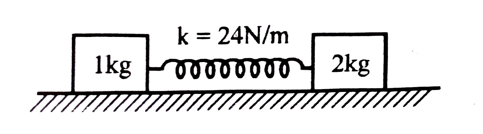 - Two blocks m(1) and m(2) are connected by a spring of force constant K...