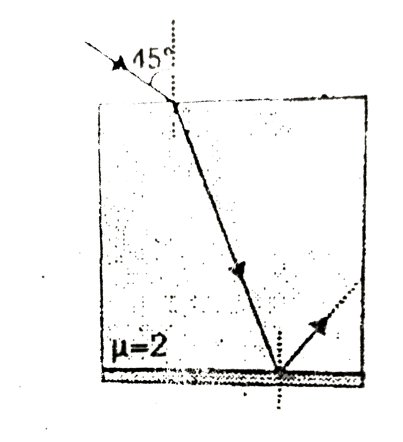- One side of a glass slab is silvered as shown in the figure. A ray of ...