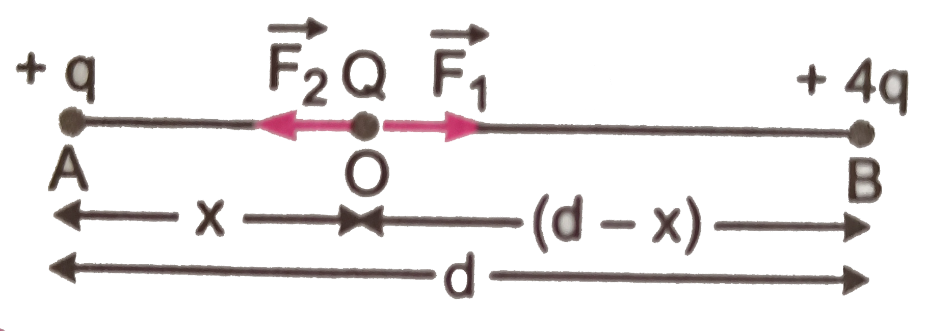 - दो आवेश q तथा + 4q एक-दूसरे से d दूरी पर हैं। एक अन्य आवेश Q को दोनों ...