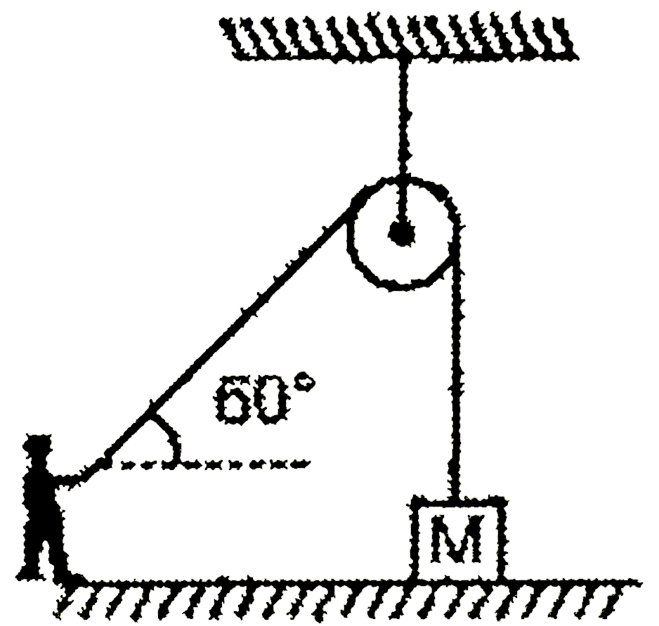 - A man of mass 60 kg is pulling a mass 'M' by an inextensible light rop...