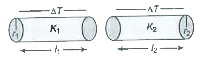 =Q/t=(K_(1)A_(1)(DeltaT))/l_(1)=(K_(2)A_(2)DeltaT)/l_(2)` `implies(K_(1)pir_(1)^(2))/l_(1)=(K_(2)pir_(2)^(2))/l_(2)` `K_(1)r_(1)^(2)l_(2)=k_(2)r_(2)^(2)l_(1)`