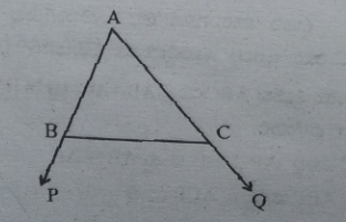 - ಚಿತ್ರದಲ್ಲಿ ABC ಯ ಬಾಹುಗಳಾದ AB ಮತ್ತು AC ಯನ್ನು ಕ್ರಮವಾಗಿ P ಮತ್ತು Q ವರೆಗೆ ವ...