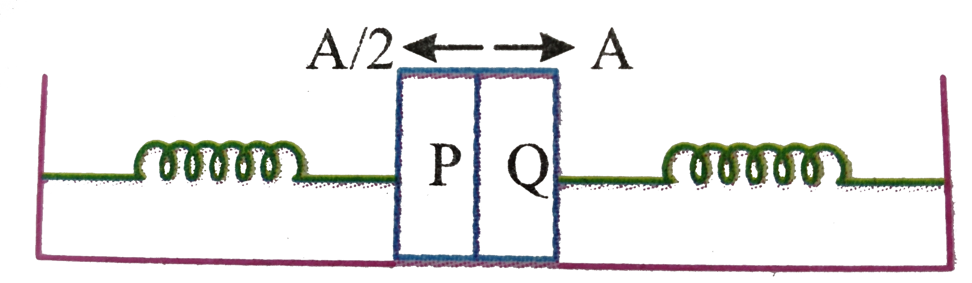 - Two identical blocks P and Q have mass m each. They are attached to tw...