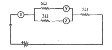 - नीचे दिए गए परिपथ में X, Y तथा Z अमीटर हैं। यदि Y का पाठ्यांक 0.5A है...