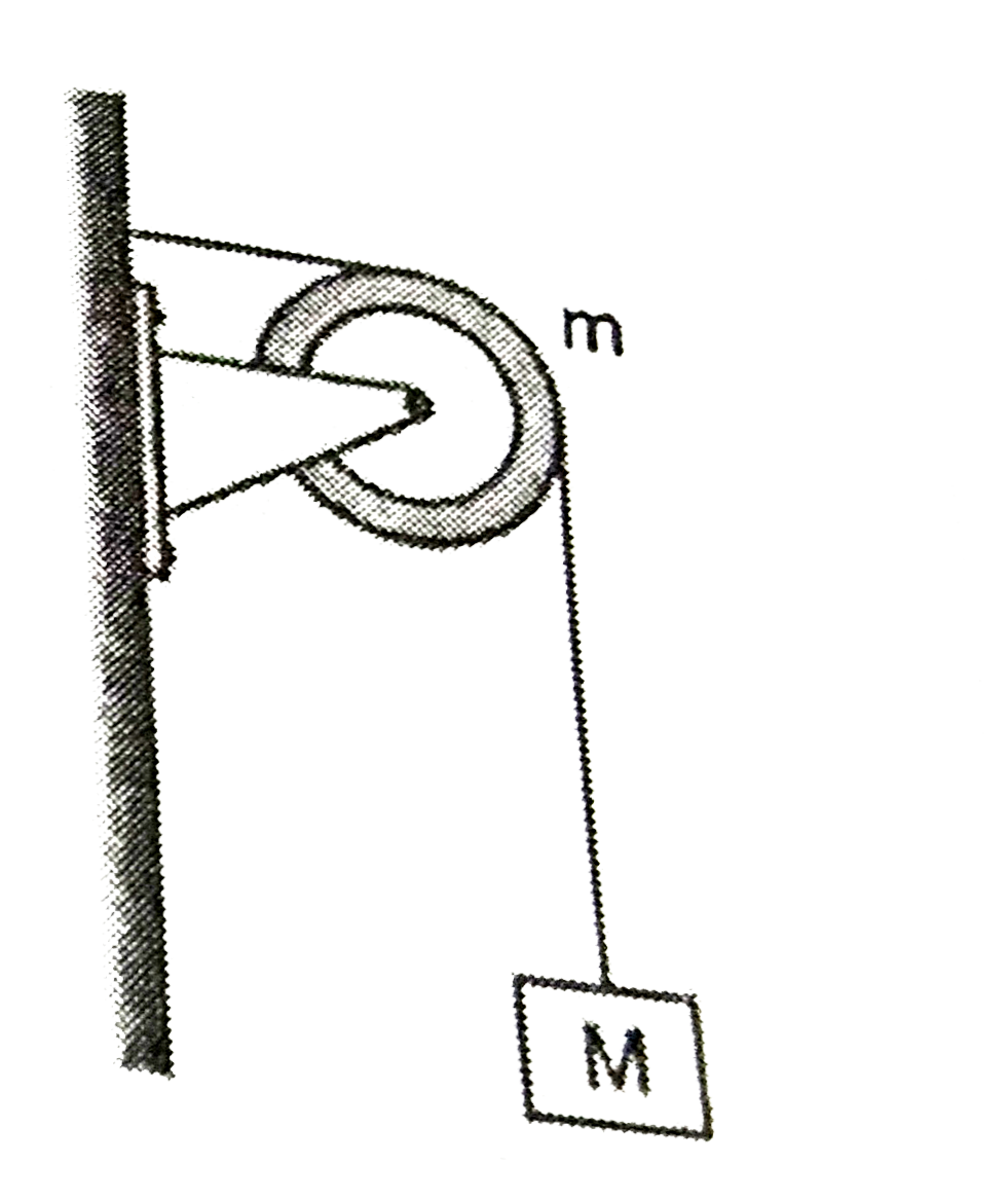 A string of negligible mass passing over a clamped pulley of mass m supports a block of mass M as shown in figure. The force on the pulley by the clamp is given b y ..........