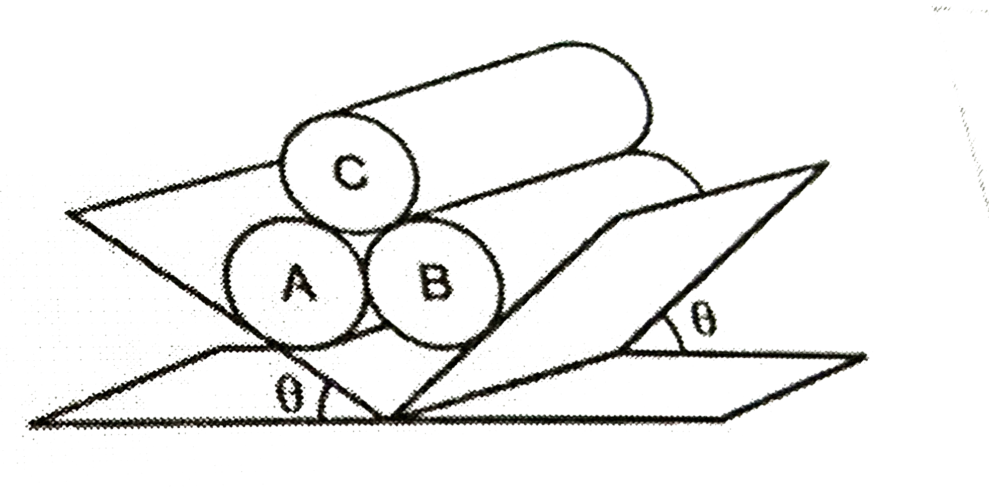 - Three identical rigid circular cylinders A, B and C arranged on smooth...
