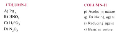 A) `PH_3` - Basic reducing nature B) `NHO_3` - Acidic , Oxidising