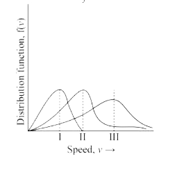 Points I, II and III in the following plot respectively correspond to (`V_(m p)` : most probable velocity)