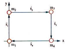 - Four particles of masses m, 2m, 3m, 4m are placed at corners of a squa...