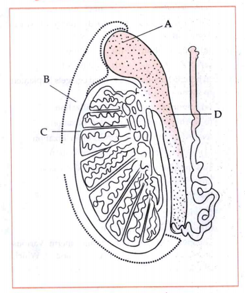 - The given figure shows a human sperm. Various parts of it are labelled...