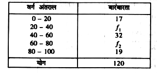 - नीचे दी गई बारंबारता सारणी का माध्य 50 है, लेकिन वर्ग अंतरालों 20-40 औ...