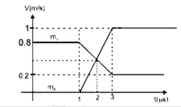 यहाँ चिकनी सतह पर रखे दो ब्लॉक A व B है। ब्लॉक A का द्रव्यमान 10 kg तथा यह 0.8 m/s के वेग से अज्ञात द्रव्यमान के स्थिर ब्लॉक B की ओर गति करता है। टक्कर के समय उनके वेग निम्न आरेख द्वारा दिए गए है। सही कथन/कथनों को चुनिये