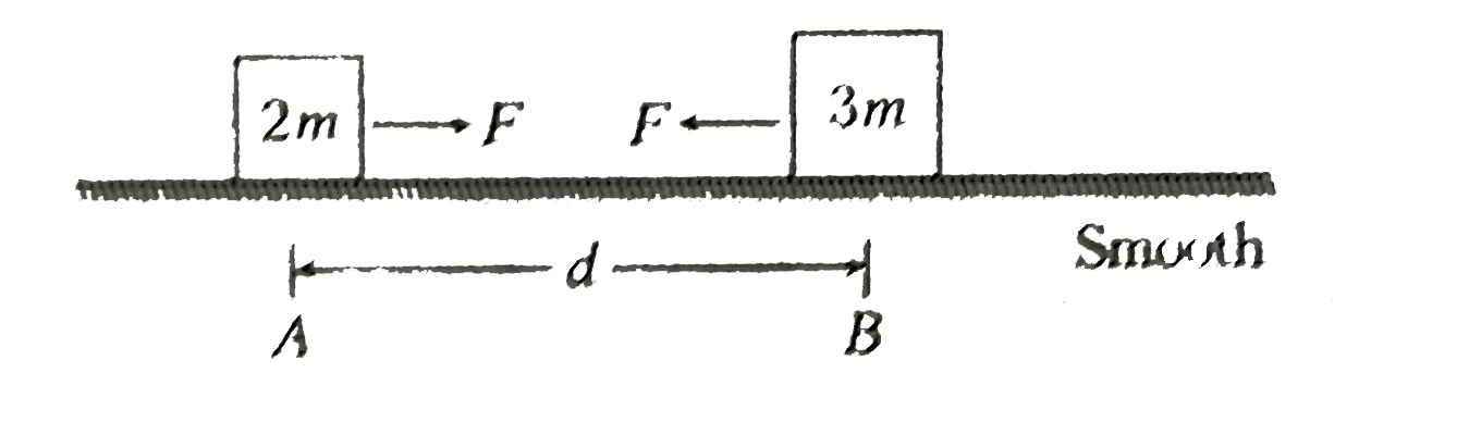 - Two particles of masses 2m and 3m are placed at separation d on a smoo...