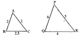 - बताएँ कि आकृति में दिए त्रिभुजों के युग्म समरूप है या नहीं। यदि है, तो...