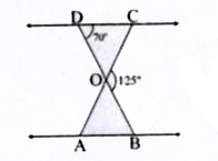 - आकृति में, DeltaODC~DeltaOBA, angleBOC = 125^@ और angleCDO = 70^@ है।...