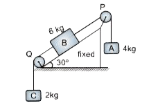 दिखाये गये निकाय में वेज स्थिर है। सभी सम्पर्क सतह घर्षण रहित है। सभी घिरनी हल्की है तथा डोरियों हल्की ओर अवितान्य `[g = 10 m//s^(2)]` है