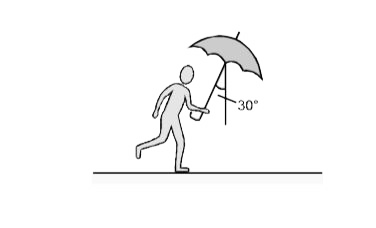 10m/s के क्षैतिज वेग से दौड़ते आदमी ने छतरी, उर्ध्व से `30^(@)` के कोण पर इस तरह पकड़ी हुई है, कि उसका निचला सिरा उसकी ओर है तथा इस तरह अपने आपको वरिष्ठ से बचा प् रहा है तो निम्न में से कोनसा कथन सत्य है-