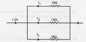 - संलग्न परिपथ में I1, I2 " व " I3 का मान ज्ञात कीजिये ।