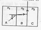 - A,B, and C are the parallel sided transparent media of refractive indi...