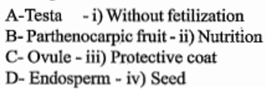 - Match the following and choose the correct option from below