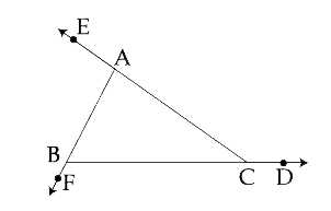 - यहाँ दी गयी आकृति में angleACD + angleCBF + angleBAE बराबर है-