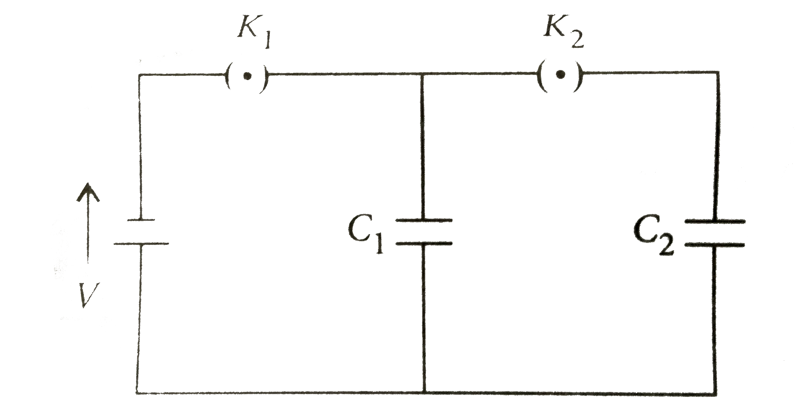 - A circuit containing two capacitor C(1) and C(2) shown in figure is in...