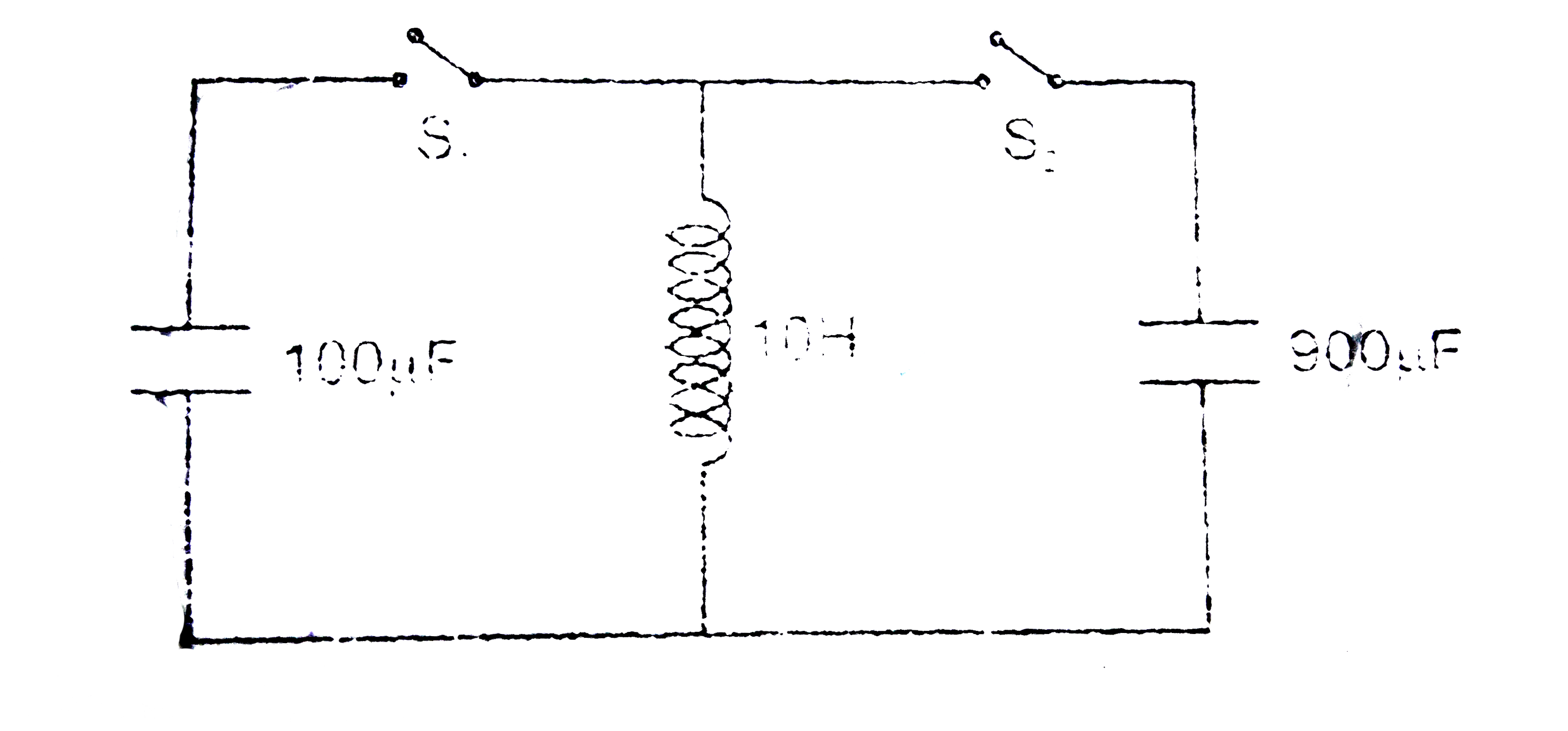 - Initially the 900muF capacitor is charged to 100 V and the 100muF capa...