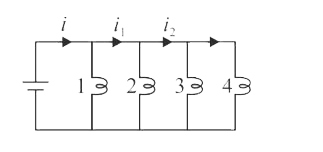 - Four bulbs are connected as shown to a battery of EMF 220 V. The volta...