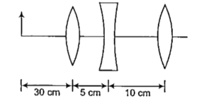 - A biconvex lens, f(1)=20cm , is placed 5cm in front of a convex mirror...