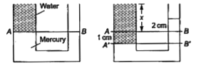 - किसी U-नली की दोनों भजाओं में भरे जल तथा मेथेलाटेड स्पिरिट को पारा एक-...