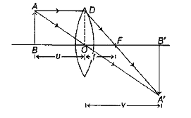 - Derive the formula (1)/(v)-(1)/(u)=(1)/(f) for a thin convex v u f le...