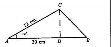 - In /\ABC, AB=20cm /A=30^@, AC=12 cm :-Find the,length of the perpendi...
