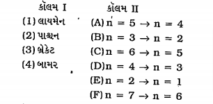 - કૉલમ I માં આપેલી વર્ણપટની રેખાને કૉલમ II માં આપેલ સંબધિત નીચી ઊર્જાના...