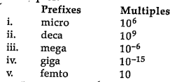 - Match the following prefixes with their multiples : {:(,"Prefixes","Mu...
