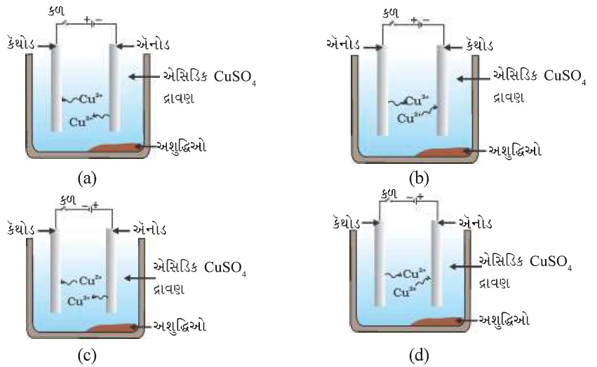 - નીચેના પૈકી કઈ એક આકૃતિ વિદ્યુતવિભાજન શુદ્ધીકરણ પ્રક્રિયાને સાચી રીતે ...