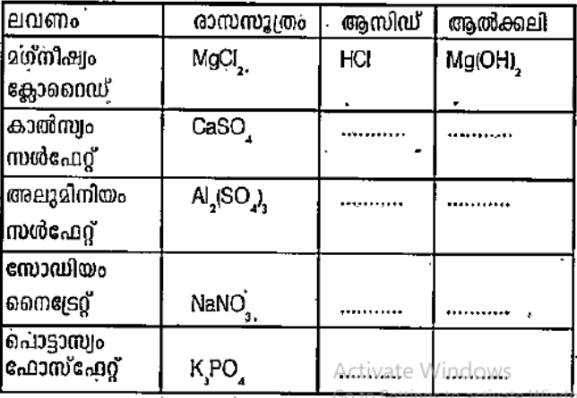 - താഴെ പട്ടികയിൽ നൽകിയിരിക്കുന്ന ലവണങ്ങൾ മനസിലാക്കി അവ ലഭിക്കാൻ പ്രവർത്ത...
