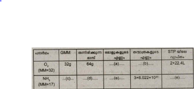 പട്ടിക പൂർത്തിയാക്കുക....