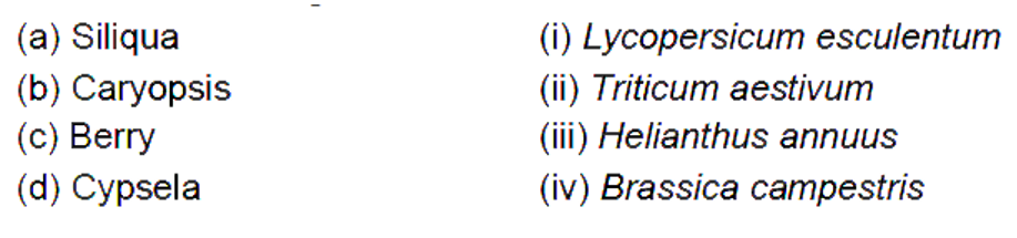 - Match the following : The correct match is