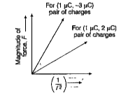 - कूलॉम बल F और (1)/(r^(2)) के बीच ग्राफ खीचिए जहाँ r दो आवेशों के बीच क...