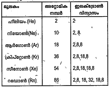 - ഉല്കൃഷ്ട വാതകങ്ങളുടെ ഇലക്ട്രോൺ വിന്യാസം സൂചിപ്പിച്ചിരിക്കുന്ന പട്ടിക ...