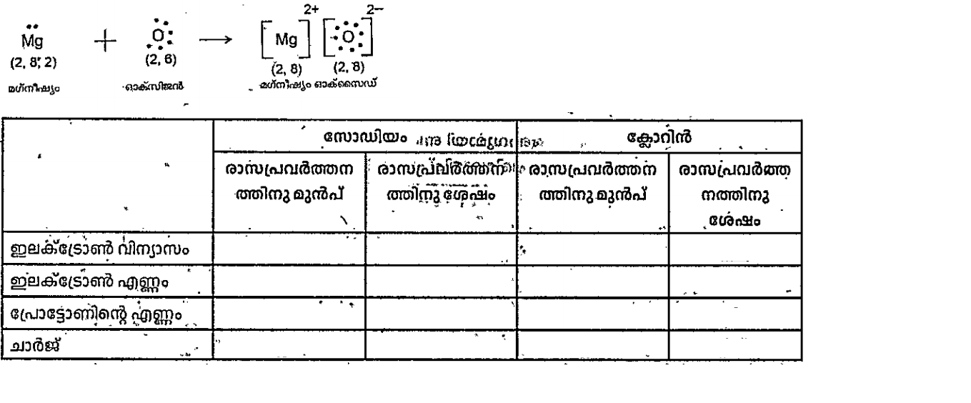 - ചുവടെ തന്നിരിക്കുന്ന ഇലക്ട്രോണ് ഡോട്ട് ഡയഗ്രം പരിശോധിച്ച് പട്ടിക പൂ...