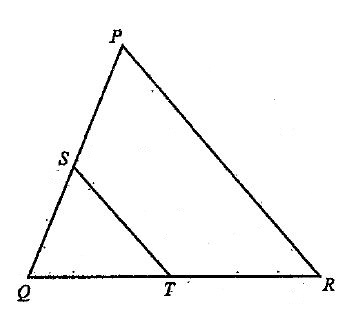 - ചിത്രത്തിൽ PR യും ST യും സമാന്തരമാണ്. വലിയ ത്രികോണത്തിലെയും ചെറിയ ത്ര...