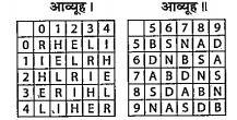 एक शब्द केवल एक संख्या समूह द्वारा दर्शाया गया है, जैसा कि विकल्पों में से किसी एक में दिया गया है। विकल्पों में दिए, गए संख्या सपूह, अक्षरों के दो वर्गों द्वारा दशशाएं गए हैं, जैसा कि नीचे दिए गए दो । आब्यूहों में हैं। आब्यूह 1 के स्तम्भ और क्‍ पंक्ति कौ संख्या 0 से 4 दौ गई है और आव्यूह 1 की 5 से 91 इन आव्यूहों रो एक अक्षर को पहले उसकी पॉक्त और बाद में स्तम्भ संख्या द्वारा दर्शावा जा सकता है। उदाहरण के लिए, 'R' को 13, 22 आदि द्वारा दर्शाया जा सकता है तथा 'B' को 67, 76 आदि द्वारा दर्शाया जा सकता है। इसी बा तरह से, आपको शब्द 'SHRI' के लिए सपूह- बने पहचानना है।